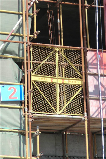 2、電梯井口必須在正負零層安裝首道安全網,在每兩層的上部都需要安裝安全網,安全網質量需與Gb 5725-1997安全網規定相一致,需按照相關規定檢查合格才能使用。在安裝和拆卸時,操作人員需按規定佩戴安全帶。在屋頂和地板,短邊超過1.5m的孔洞,也應設置防護門,要求和上述一致,底部設置安全網。