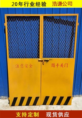 浩謙公司專業(yè)生產(chǎn)基坑護(hù)欄施工電梯防護(hù)門又叫做施工電梯安全門用于電梯井道的防護(hù)作用,防止發(fā)生意外事故!防護(hù)門用料:四周角鋼固定,中間一道橫梁,菱形網(wǎng)片覆蓋。兩側(cè)各兩個(gè)用于固定防護(hù)門的構(gòu)件。產(chǎn)品規(guī)格:1.5m*1.2m